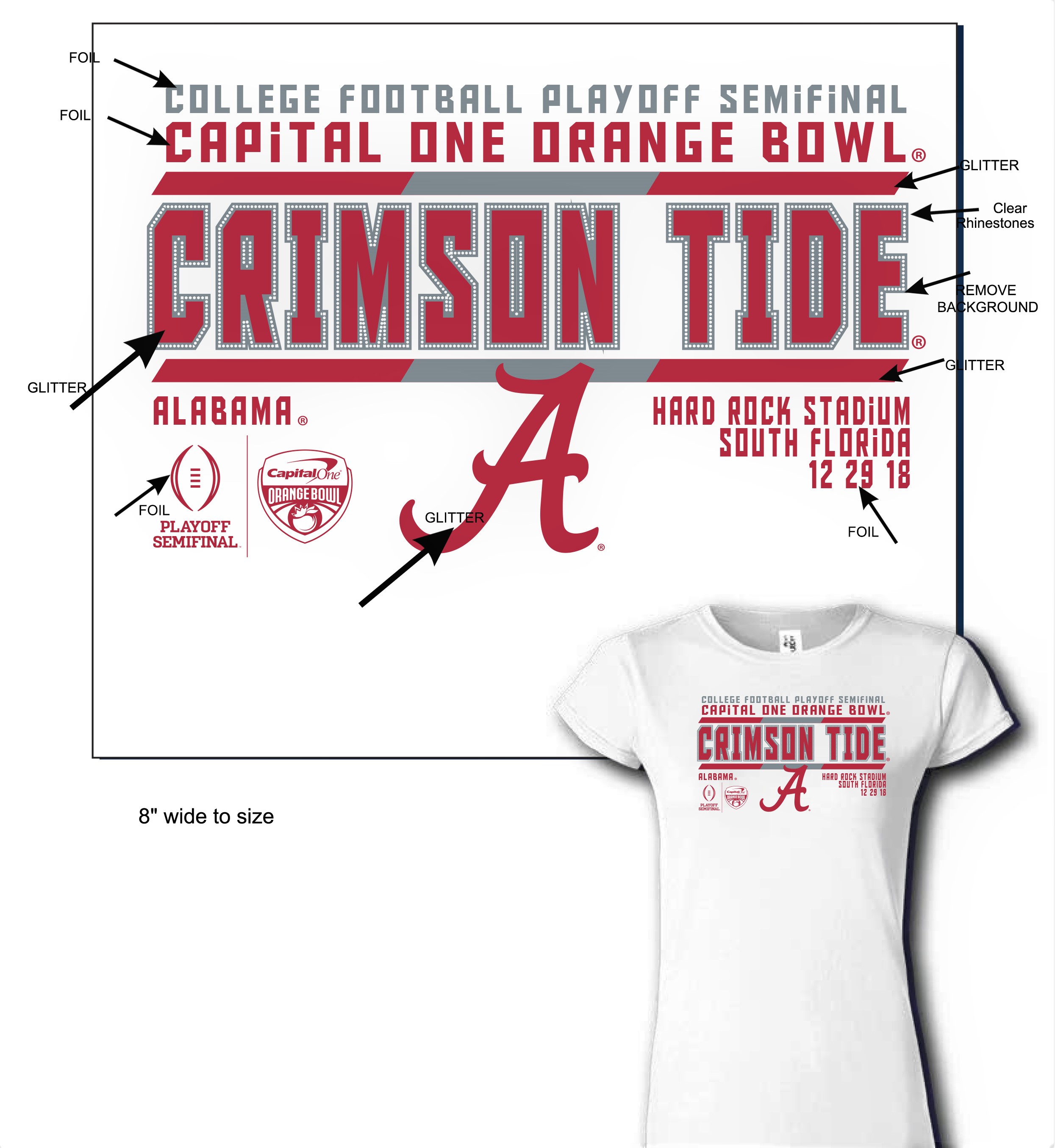 · The the number of colors of stones, sequins or glitter in a design makes a difference. For example a 2 color design cost less than a 3 color design.